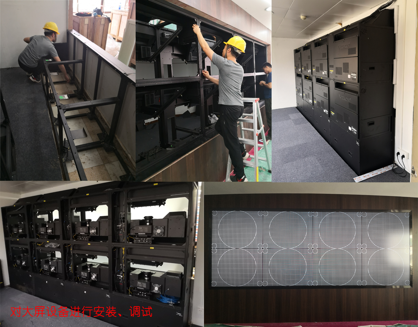南网某供电局会议室配置了一套50寸2行4列的DLP拼接大屏幕系统,主要用于日常会议、应急指挥工作。因业务紧急需要,需将大屏系统设备进行整体迁移,科灿科技全力助力其大屏搬迁工作。